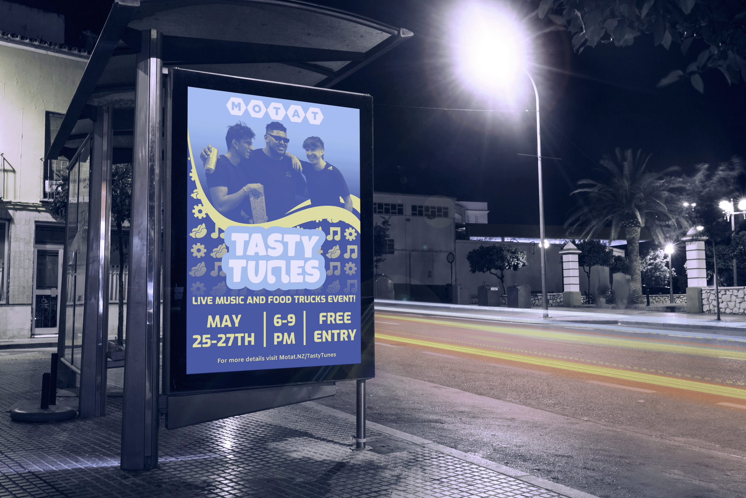 I transformed MOTAT's Food Truck Round up into Tasty Tunes, a colourful night time market that celebrates NZ Music Month with music, multicultural food, while also sharing MOTAT's historical technology. The event has been rebranded to cater specifically for young adults and families who rarely visit museums.