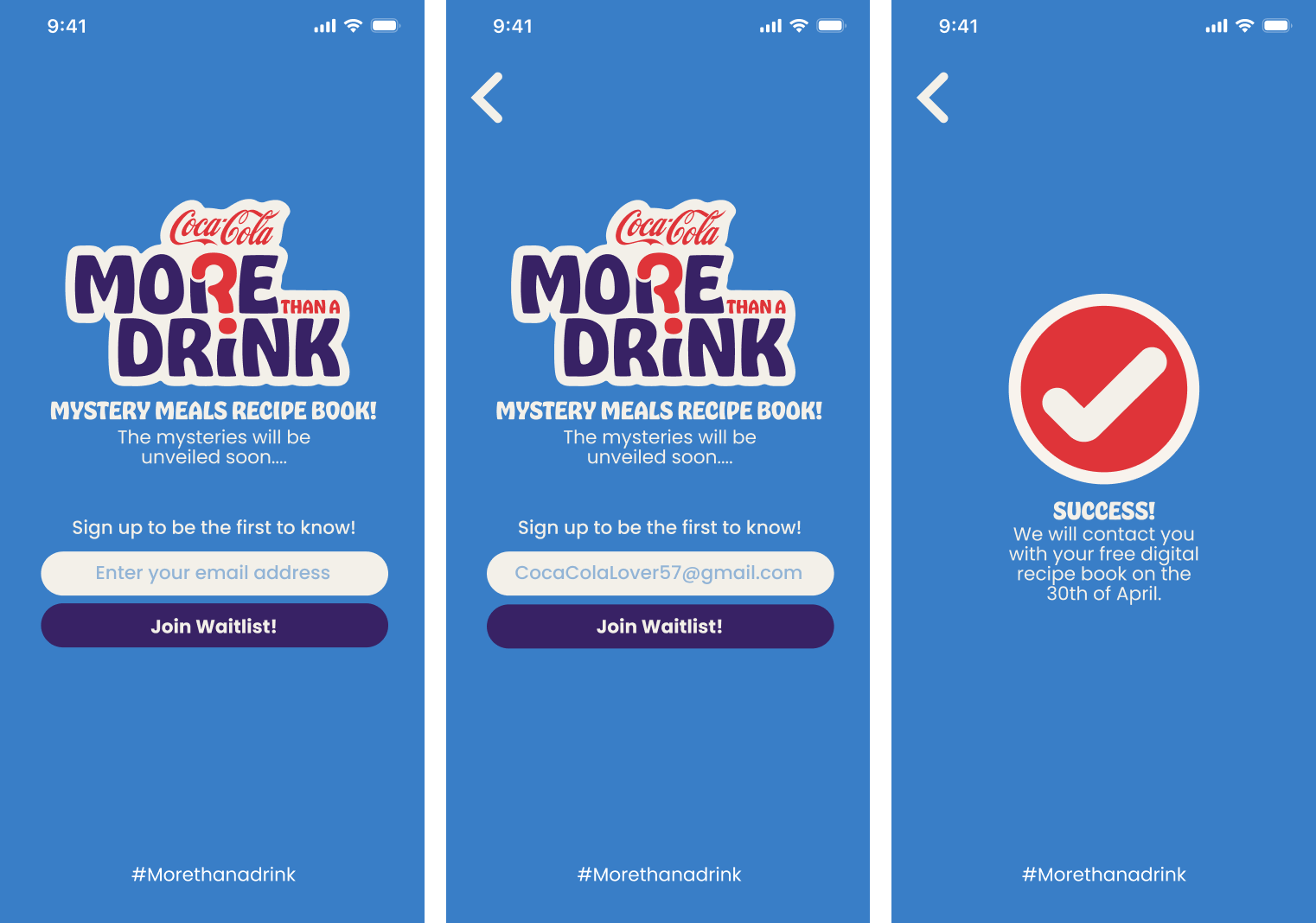 A waiting list was also created for users to sign up to be notified when the full mystery meal kit recipe books released 1 month after launch.